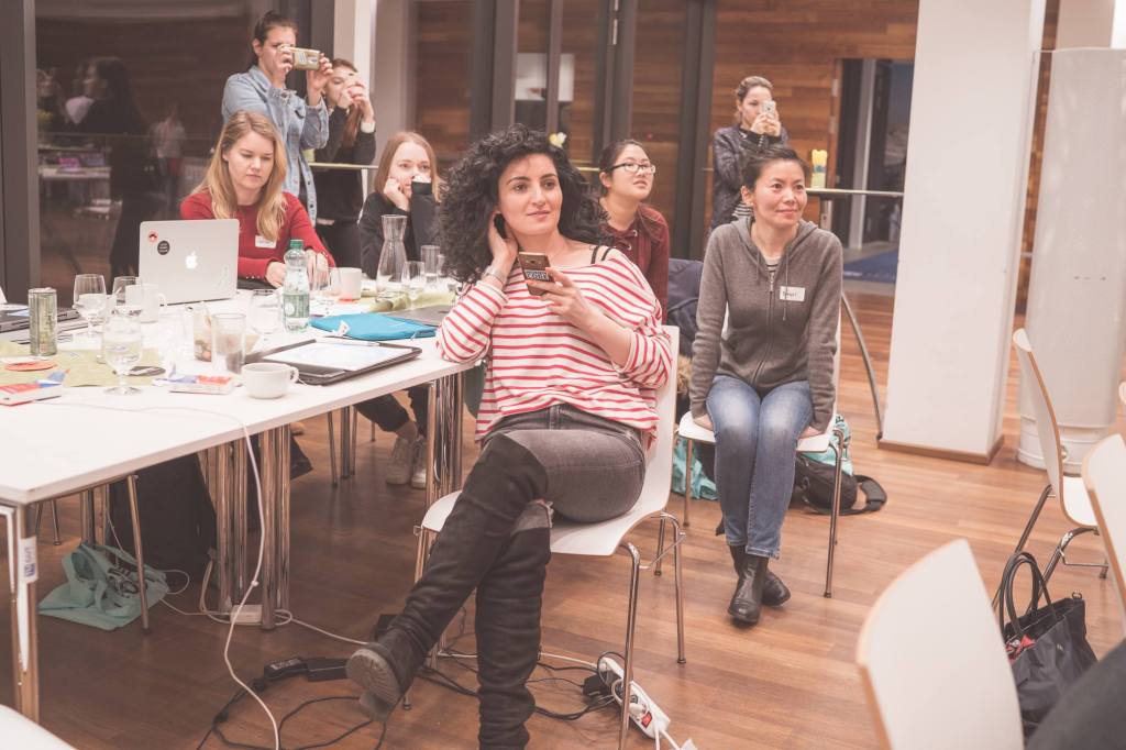 A hackathon is a full-day event where people – in our case women*, create their own projects in small groups during the course of a day.